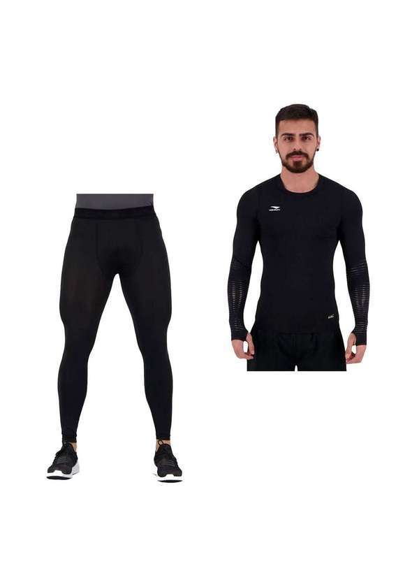 Descrição:Melhore seu desempenho com a Kit Térmico Penalty Calça Flat X + Camisa Delta Pro X. A calça foi confeccionada em poliéster e elastano, garantindo muito conforto e uma compressão na medida certa. Além de melhorar a oxigenação dos músculos, gerando mais potência, resistência e velocidade, esta bermuda auxilia na recuperação muscular melhorando a circulação sanguínea, ela reduz as vibrações musculares o que diminui as chances de acontecer uma lesão e auxilia no controle de temperatura do corpo. Seu tecido conta com as tecnologias Nano Fresh para prevenir mau odor, Dry One auxilia na secagem rápida e na transferência do suor e Way Stretch que torna o tecido mais flexível e garante a compressão. Medidas aproximadas (cm): P-31x88 / M-33x90 / G-35x92 / GG-37x94 (largura x altura). Já a camisa possui um tecido em poliéster com elastano e conta com a tecnologia Termic Control que mantém a temperatura do corpo e auxilia na performance durante a prática esportiva e uma proteção UV 50+ permanente contra as radiações solares UVA e UVB. Além de suas tecnologias, esta camisa possui estampas com grip nas mangas, dedeiras e silicone em sua barra, o que evita com que a camisa suba durante as atividades físicas. Medidas aproximadas (cm): P-40x62x50 / M-42x64x52 / G-44x66x54 / GG-46x68x56 (Largura x Comprimento). INFORMAÇÕES ¿ CALÇA Referência: 340455. Material: 92% poliéster reciclado e 8% elastano. Estilo da peça: Lisa. Cós: Elástico. Gênero: Masculino. Indicado para: Treinos /Jogos. TECNOLOGIAS Nano Fresh: Previne a proliferação das bactérias que causam mau odor e permite a rápida evaporação do suor. Dry One: Tecnologia que garante a rápida absorção e o transporte do suor para as camadas externas do tecido, proporcionando uma secagem mais rápida e deixando o corpo arejado. Way Stretch: Tecido que proporciona flexibilidade e aumenta a oxigenação dos músculos, melhorando a circulação sanguínea, diminuindo assim o risco de lesões. INFORMAÇÕES - CAMISA Referência: 310608. Composição: 92% Poliéster e 8% Elastano. Gênero: Masculino. Mangas: Longas. Gola: Careca. Indicado para: Corridas e treinos. TECNOLOGIAS: Termic Control: Tecido que mantém a temperatura do corpo e auxilia na performance durante a prática esportiva. UV 50+ Permanente: Proteção contra as radiações solares UVA e UVB.