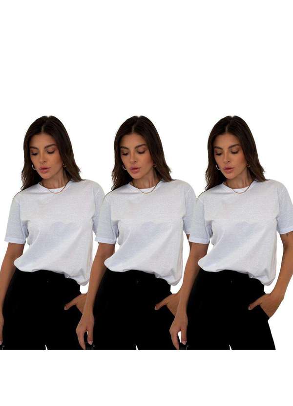 Cianitas - Kit Tres Camisetas Femininas Lisas Branca - Branco