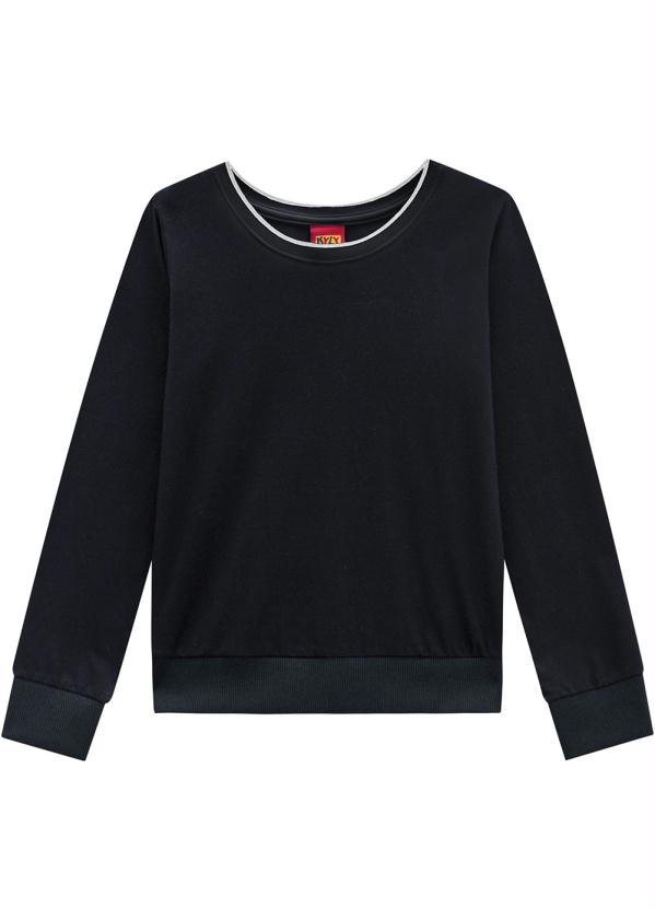 Observação: possui acabamento de punhos e barra em ribana e decote com listra de cor contrastante.