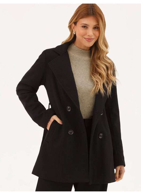 Principessa - Casaco de Lã Batida Alongado Preto Aysa