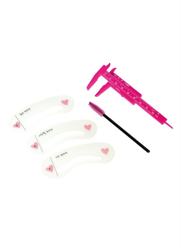 Com 1 paquimetro (10 cm), 1 escova para cílios (9 cm) e molde para sobrancelha (8 cm). Sem opção de cor.