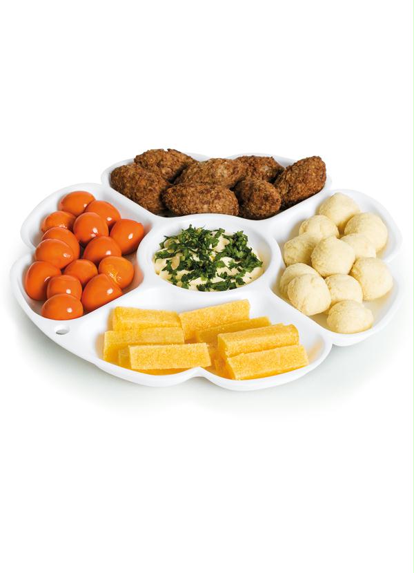 Petisqueira com 5 divisões em plástico. Cor: Branco. Tamanho: 27x2 cm.