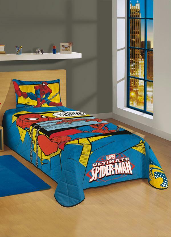 1 colcha solteiro (150x210 cm) em algodão e poliéster.