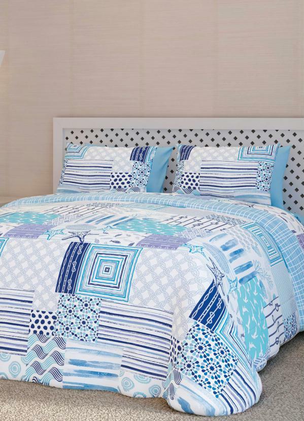 em algodão 150 fios e manta interna em poliéster. Tam.: 240x280 cm.