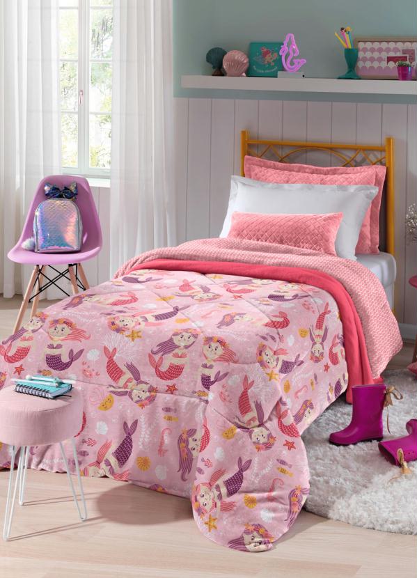 Hedrons - Edredom Plush Sereia Solteiro 1 Peça