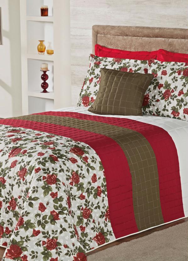 em algodão e poliéster. Com 1 cobre leito (240x220 cm), 2 porta travesseiros estampados (50x70 cm cada) e 1 almofada lisa (45x45 cm).