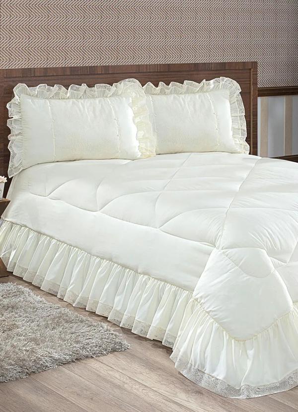 Lar e Lazer - Jogo de Colcha Renda Bege Casal 3 Peças