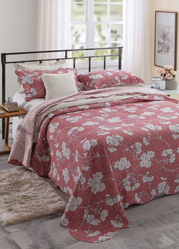 em poliéster. Com 1 colcha (260x240 cm) e 2 porta travesseiros estampados (50x70 cm cada).
