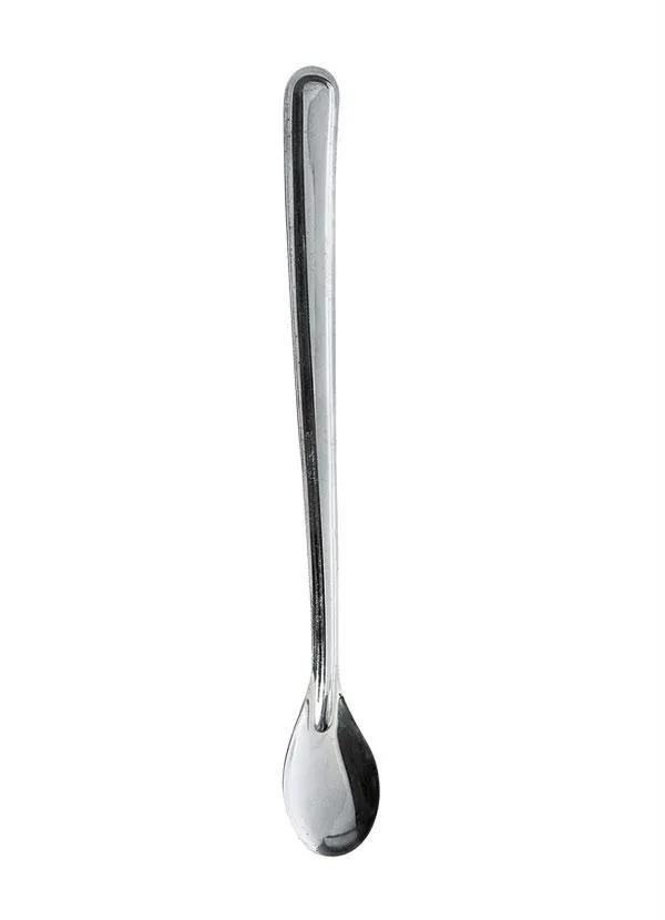 Colher para suco com cabo longo, ideal para mexer sucos sem entrar em contato com o líquido.
