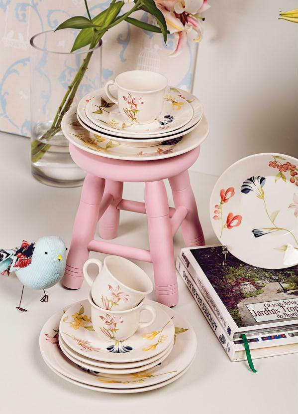 jogo de jantar 20 peças, Cor:com estampa de flores , Cotém: 4 pratos rasos (26cm), 4 pratos fundos (22cm), 4 pratos de lanche(19cm), 4 xicaras (200ml) e 4 pires (16,5cm), em cerâmica.