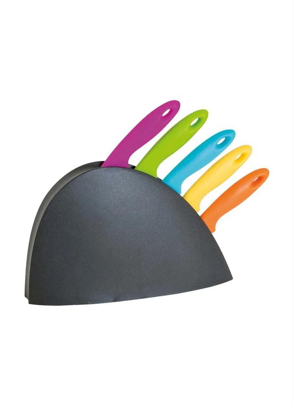 Composição: facas em metal com cabo plástico e suporte em plástico.