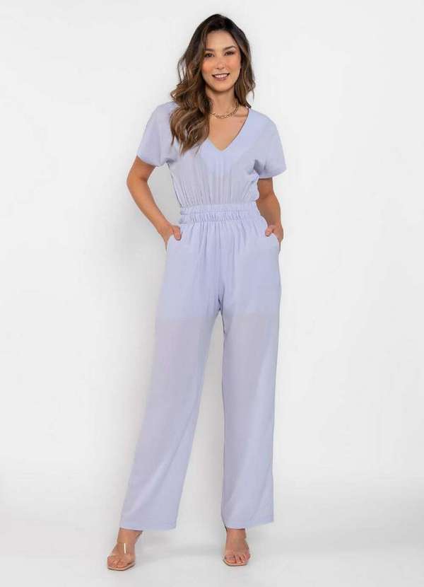 Lamis - Macacao Crepe Liso Acinturado com Bolsos Lilas