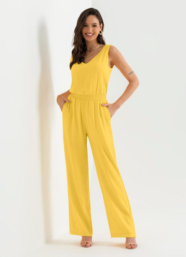 Cativa - Macacão Feminino Básico com Bolso Amarelo