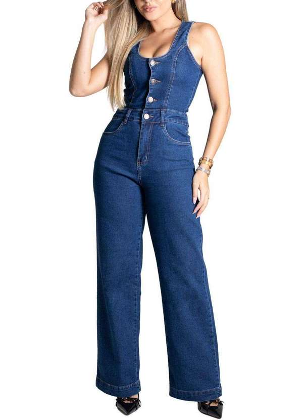 Macacão feminino confeccionado em jeans, proporcionando maior conforto e flexibilidade.O detalhe está na modelagem wide leg com corte diferenciado Fechamento frontral por botões Bolsos frontais e traseiros funcionais Barra simples Tecido: Jeans Tipo de Lavagem: Color Cor: Azul médioComposição: 80% Algodão 18% Poliéster 2% Elastano