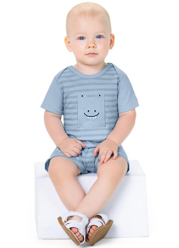 Alenice - Macacão Listrado com Bolso Menino Azul