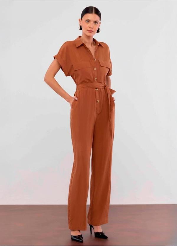 Carlota Costa - Macacão Longo Liso Marrom