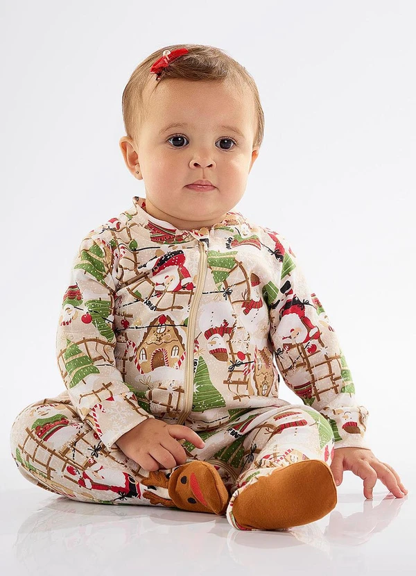 Up Baby - Macacão Natalino Unissex para Bebê Bege