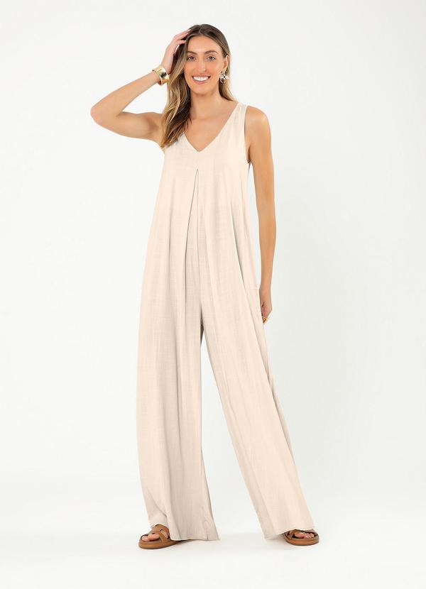 Cativa - Macacão Pantalona em Viscose Bege