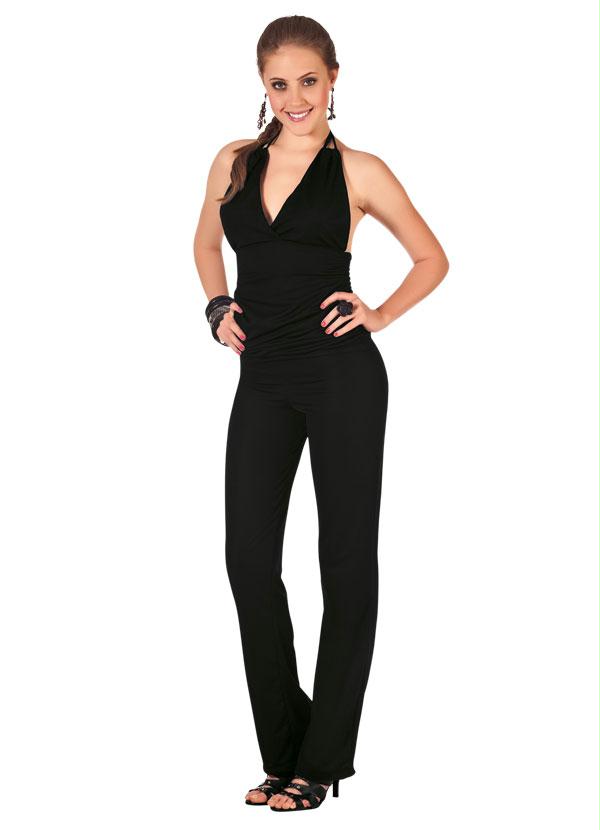 Outlet - Macacão Preto Frente Única com Alças de Cetim