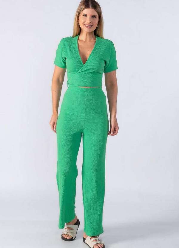 Macacão manga curta e amarração Dica: usar com uma sandália Composição: 99%poliester 01% elastano Modelo usa: Tamanho P - Medidas 1,75 de altura | 60kg