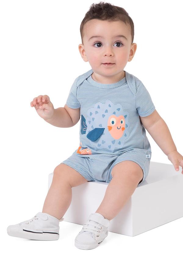 Malwee Kids - Macaquinho Baiacu com Aplique Azul Claro