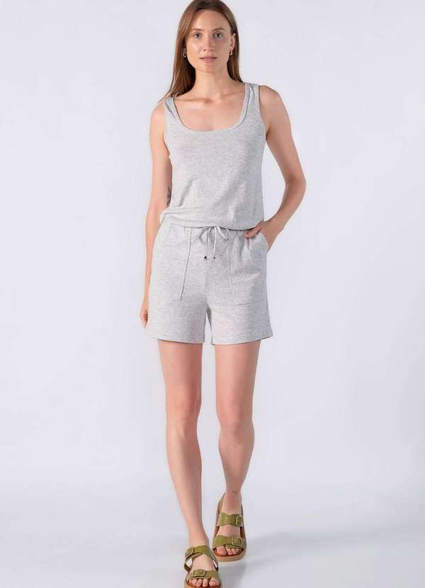 Lamis - Macaquinho Canelado com Amarracao na Cintura Cinza