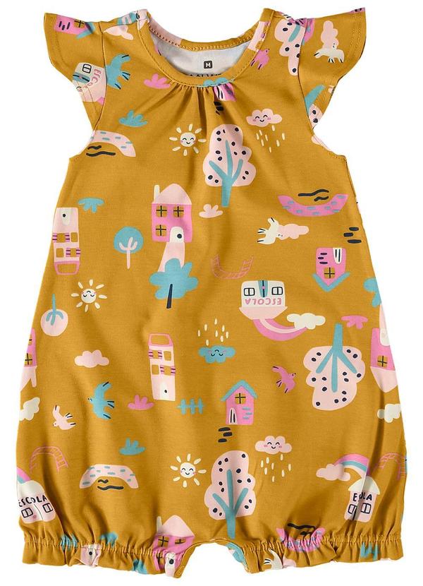 Malwee Kids - Macaquinho Casinhas Menina Amarelo Mostarda