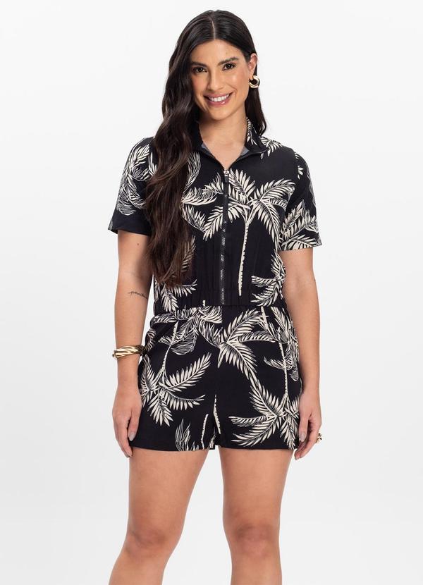 Rovitex - Macaquinho Curto Estampado em Viscose Wtb Preto