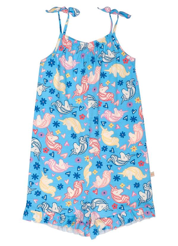Tink Bink - Macaquinho de Alça Estampado com Babado Azul