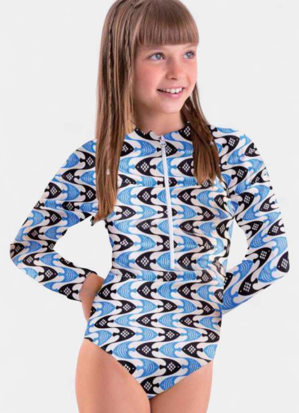 A escolha perfeita para as pequenas fashionistas que querem arrasar na praia ou na piscina! Maiô estampado, forrado, com mangas longas, proteção UV e detalhes que dão um charme a mais. Zíper frontal para um ajuste seguro e confortável, porque sabemos que as aventuras não podem esperar! Ideal para pular, dançar e correr sem preocupações! COMPOSIÇÃO: 82% Poliéster - 18% Elastano Prepare-se para um verão cheio de estilo e diversão!