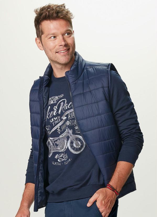 Colete confeccionado em tafetá. Peça chave para deixar o look mais descontraído e moderno, combine com camiseta estampada e bermuda em sarja!