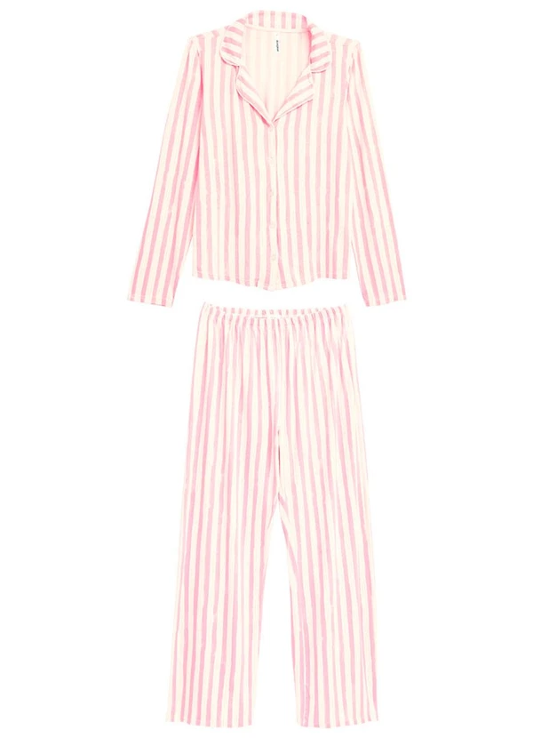 Malwee - Pijama Longo Listrado em Malha Viscose Rosa