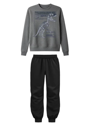 Conjunto Tyrannosaurus Rex em Moletom Cinza