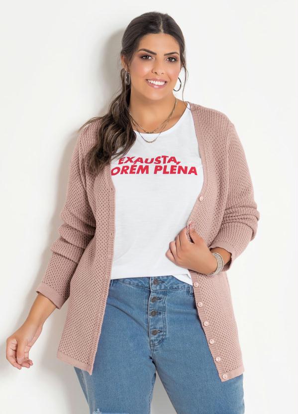 Marguerite - Casaco Tricô com Botões Rosê Plus Size