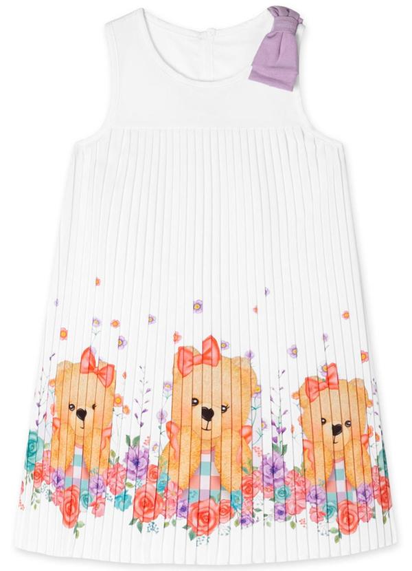 Vestido Plissado para menina confeccionado em microfibra leve com elastano. Charmoso e perfeito para aproveitar os dias de sol, possui modelagem regata, detalhe em laço no ombro, botão funcional nas costas e estampa de ursinhos e flores na saia. Aposte! Sua pequena vai ficar ainda mais linda!