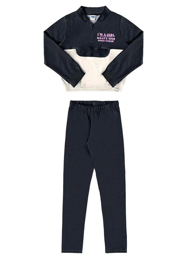 Marlan - Conjunto Blusão e Calça Molecotton I'M Preto