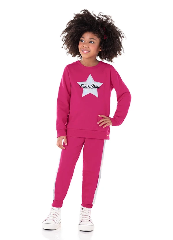 Marlan - Conjunto Blusão e Calça Moletom Holográfico Rosa