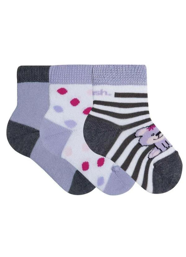 Mash - Kit 3 pares Meia Bebê Lilas EscuroCódigo do produto: 22181026EMBALAGEM : KIT LINHA : INFANTIL OCASIÃO DE USO : CASUAL