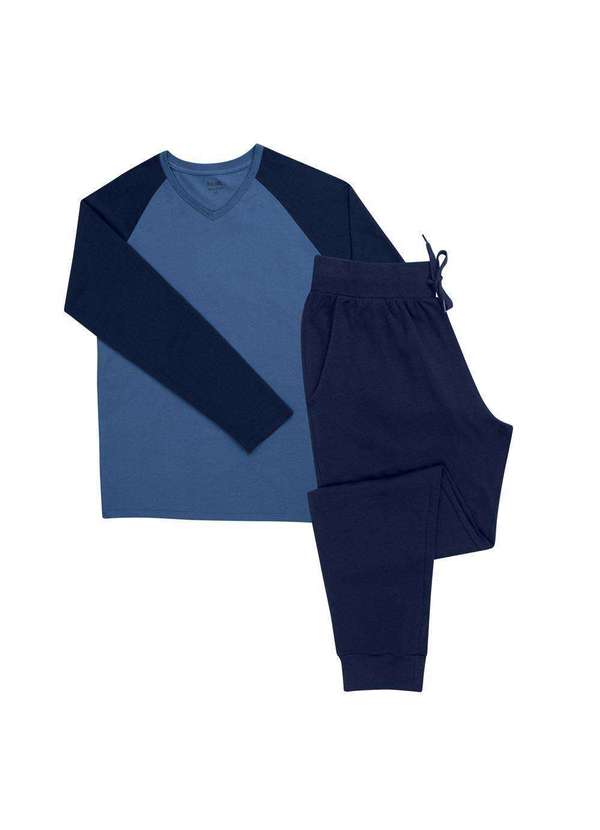 Mash - Pijama Mash Masculino Manga Longa Bolso Azul Jeans Escuro