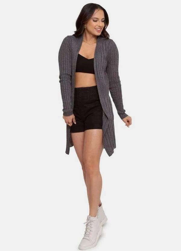 Pink Tricot - Max Casaco de Tricô Canelado Liso Pink Tricot Feminino Grafite