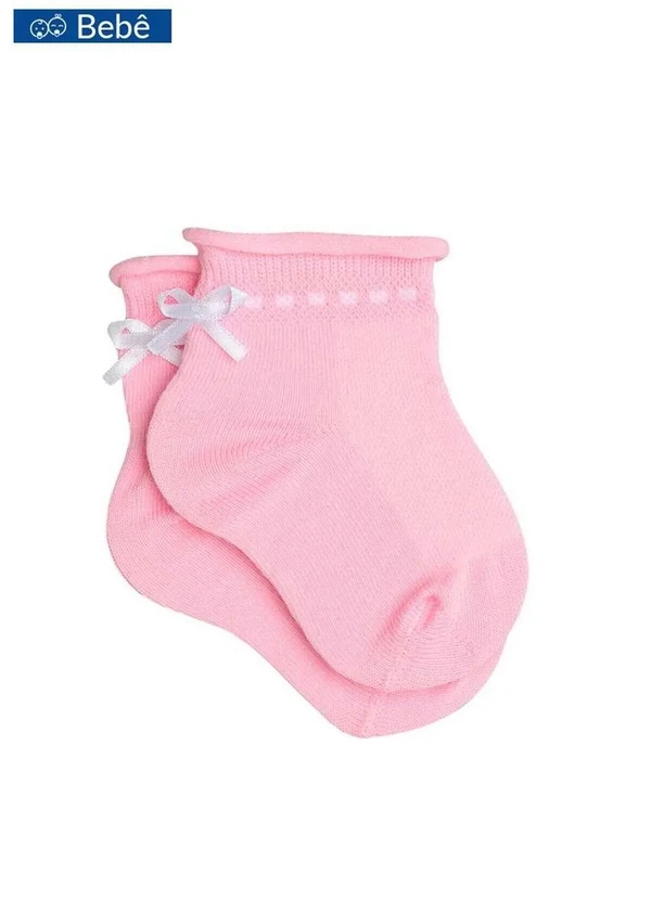 Característica: Meia bebê. Calcanhar verdadeiro. Sem punho. Detalhe em laço na parte de trás do punho. Cano: Médio. Composição: 74% Algodão, 23% Poliamida e 03% Outra fibra.