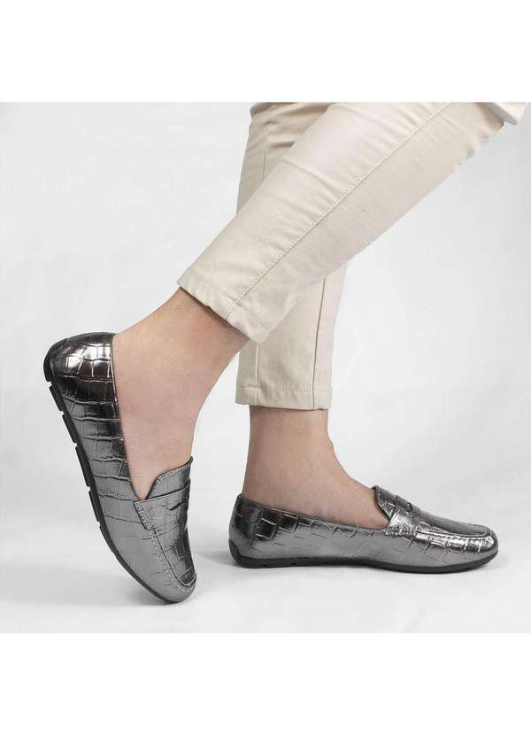 Zatta Calcados - Mocassim Zatta Flat Eliana Prata Velho Cinza