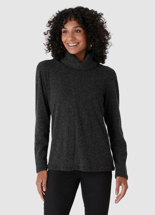 Malwee - Blusa Ampla em Tricot Rajado Preto