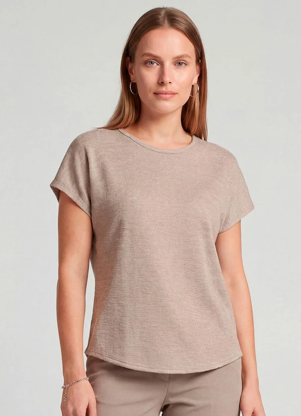 Infinita Cor - Blusa Feminina Básica Manga Curta Marrom