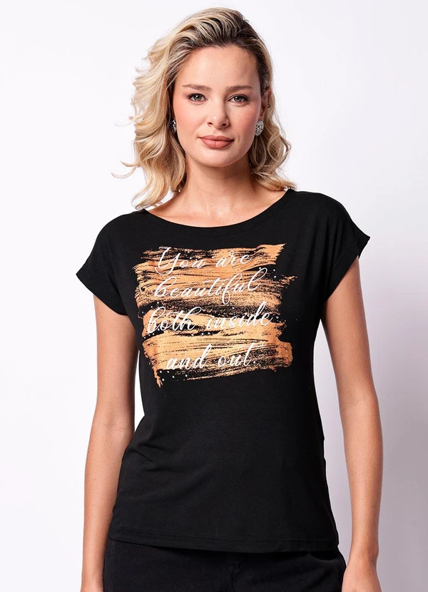 Torra - Blusa Feminina com Estampa Manga Curta Preta