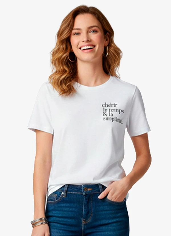 Infinita Cor - Blusa Feminina Manga Curta Bege