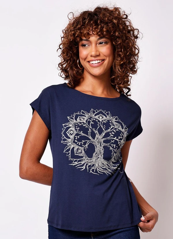 Torra - Blusa Feminina Manga Curta com Strass Marinho