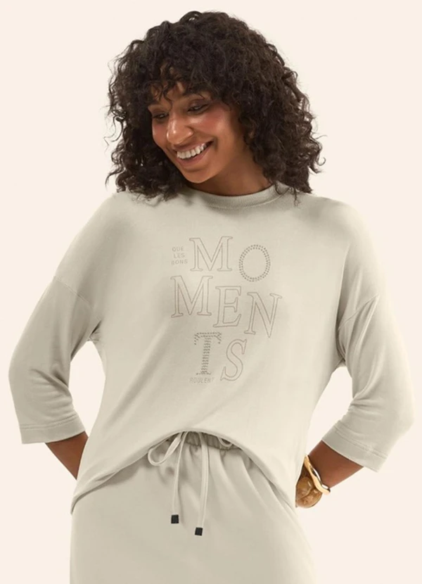 Rovitex - Blusa Manga 3/4 em Visco Tricot Bege
