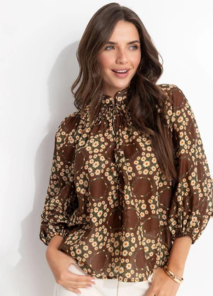 Blusa Bata Estampada Marrom