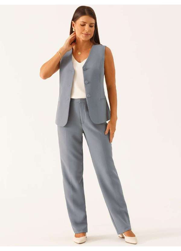 Principessa - Calça Alfaiataria Reta Regular Cinza Belymara